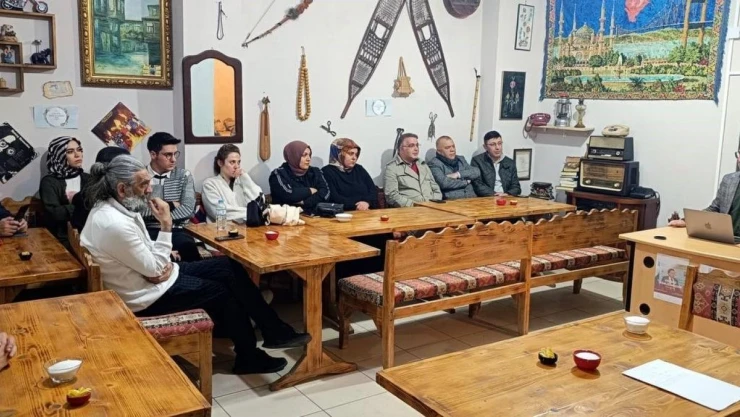 Türkiye Dil ve Edebiyat Derneği Erzurum Şube Başkanı Murat Ertaş, Bayburt Elisa Sahafta ‘Dilimiz Kimliğimizdir’ başlıklı bir sunum gerçekleştirdi.