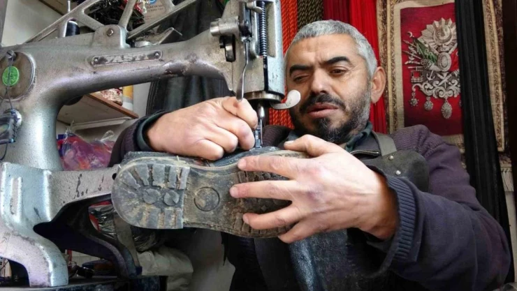 Yozgat'ta 17 yaşında çırak olarak başladığı mesleğine 26 yıldır devam eden 43 yaşındaki evli ve 2 çocuk babası Sinan Yılmaz, bedensel engelli olmasına rağmen ilk günkü şevk ve heyecanla ayakkabı tamir ederek ailesinin geçimini sağlıyor.