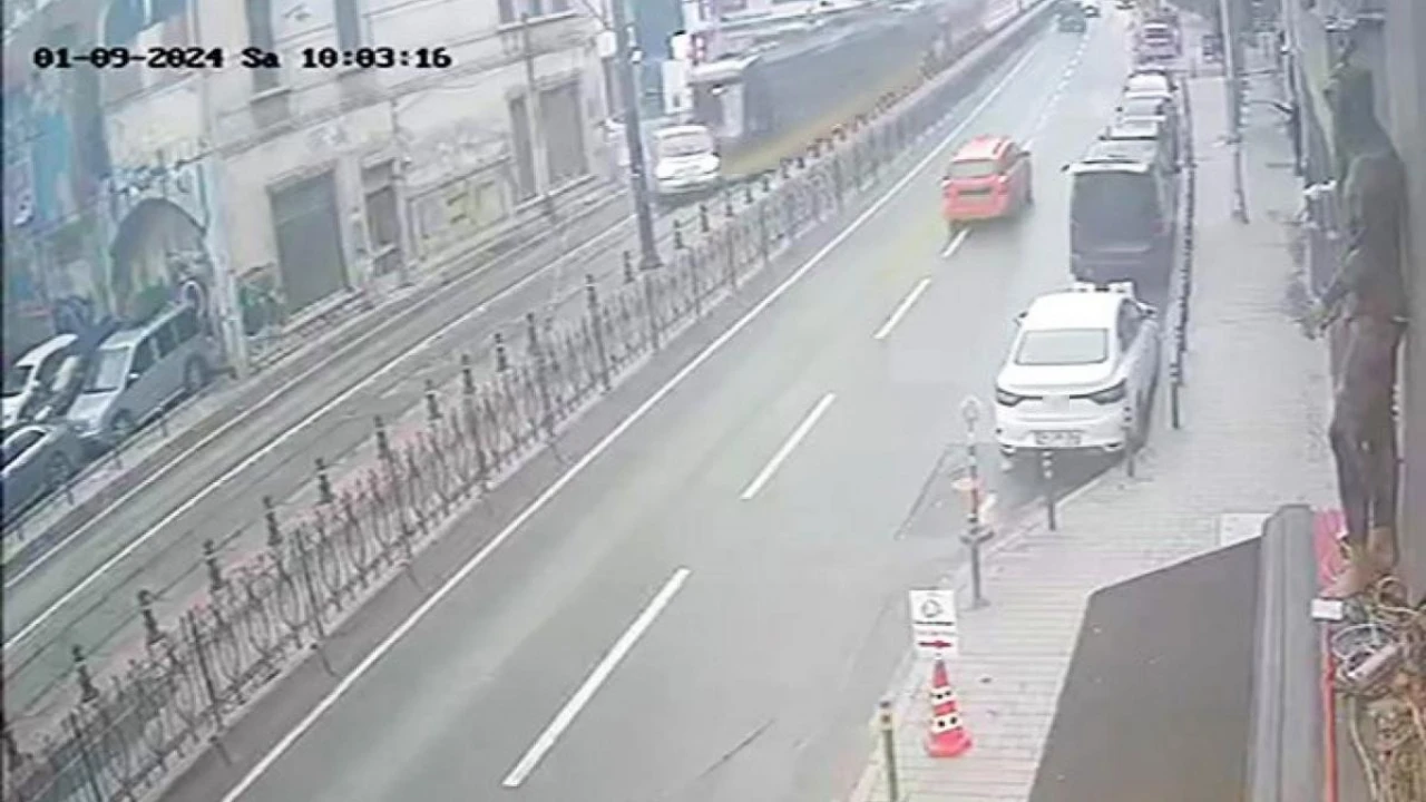 Beyoğlu'da tramvayın, tramvay yoluna giren kamyonete çarpması sonucu 1 kişinin yaralandığı kazanın güvenlik kamerası görüntüsü ortaya çıktı. Görüntülerde çarpışmanın etkisiyle kamyonetin metrelerce sürüklendiği görülüyor.