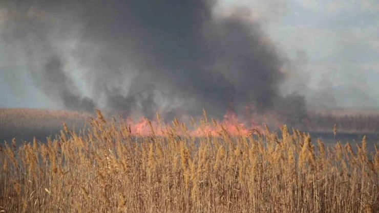 Konya’nın Beyşehir ilçesinde Beyşehir Gölü sazlıklarında çıkan yangın, balıkçı limanında teknesi bulunan balıkçıları korkuttu.