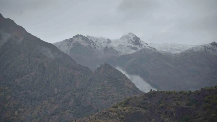 Şırnak’ın Beytüşşebap ilçesinde havaların soğumasıyla birlikte dağlar beyaza büründü.