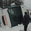 Bilecik'te işçi servisinin kontrolden çıkarak devrilmesi sonucu meydana gelen trafik kazasında 1 kişi yaralandı. Şerit ihlali yapan tırı gören sürücü, kafa kafaya çarpışmamak için direksiyonu kırınca muhtemel facianın önüne geçti.