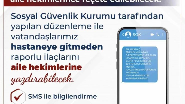 Bakan Işıkhan, X hesabından yaptığı paylaşımda aile hekimlerinin raporlu reçete edebildiği ilaç sayısını bin 858’e çıkardıklarını bildirdi. Işıkhan, Sosyal Güvenlik Kurumunun vatandaşlara atacağı SMS’ler ile hangi ilaçların bu kapsama dahil olacağını bilgilendireceklerini belirtti.