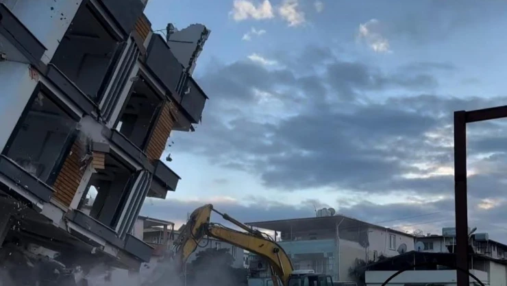 Kahramanmaraş merkezli depremlerde büyük yıkım yaşayan Hatay’da hasarlı binaların yıkımında sona gelindi. Antakya ilçesi Akevler Mahallesi’nde bulunan 5 katlı hasarlı binanın yıkımı esnasında çökme meydana geldi. Binanın çökmesiyle iş makinası operatörü kaçarak canını kurtardı. Çöken bina iş makinasında hasara yol açtı. Korku dolu anlar vatandaşlar tarafından cep telefonu kamerasıyla görüntülendi.
