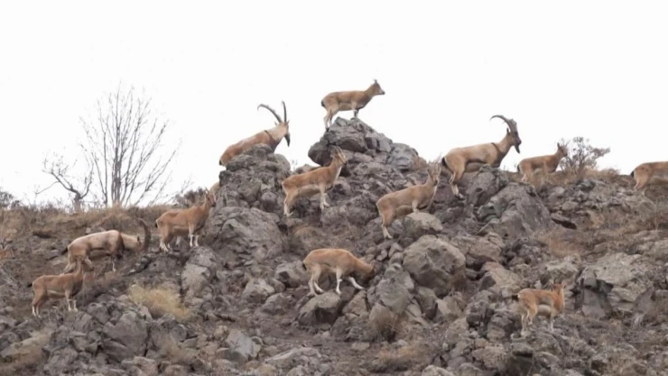 Bingöl'de dağ keçisi sürüsü doğal ortamında görüntülendi