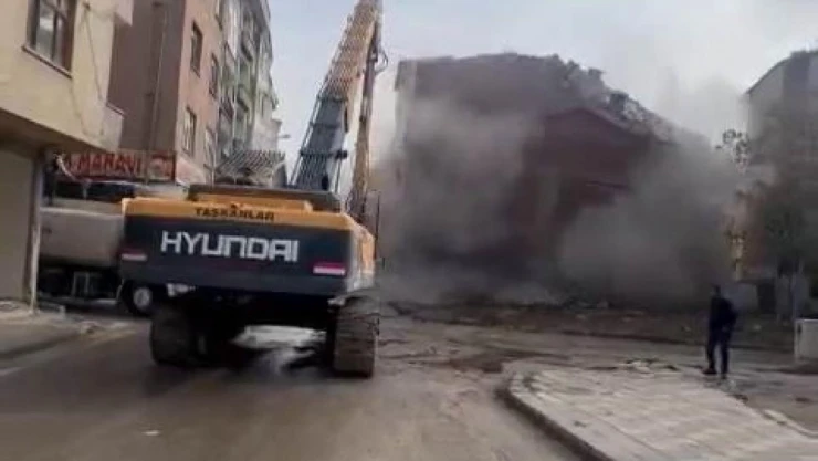 Kahramanmaraş merkezli meydana gelen büyük depremlerde hasar alan binalar tek tek yıkılıyor.