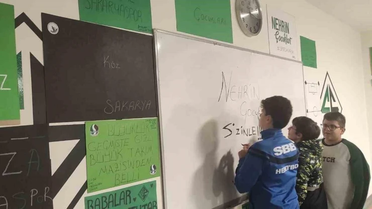 Marmara derbisi olarak nitelendirilen ve Sakaryaspor’un 3-1’lik galibiyetiyle biten Kocaelispor maçı öncesinde öğrenciler, yeşil-siyahlı takımın soyunma odasına girerek futbolculara destek mesajları bıraktı. Ayrıca bir öğrenci Tuncay Şanlı diğer öğrenciler de futbolcu taklidi yaparak oluşturdukları koreografiyle yüzleri gülümsetti.