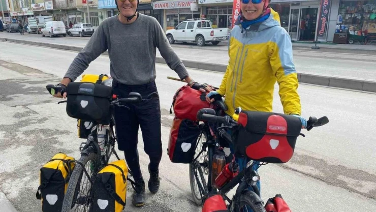 İsviçre’den bisikletleriyle yola çıkan çift, bir çok ülkeye uğradıktan sonra geldikleri Türkiye’de Konya’nın Karapınar ilçesinde mola verdi.