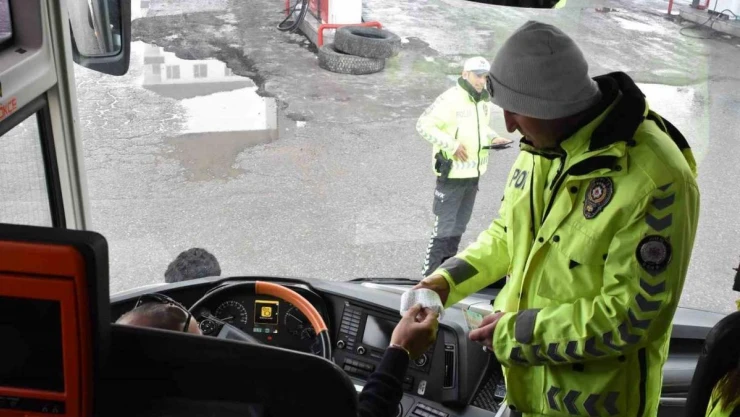 Bitlis polisi otobüslerde emniyet kemeri bilgilendirmesi yapıyor