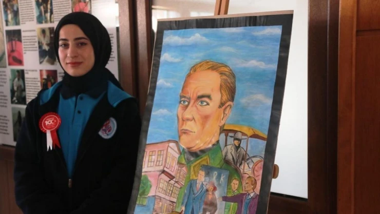 Okul Müdürü Felemez Dinç ise sergide 32 resmin bulunduğunu belirterek, “Cumhuriyet’in 100. yıl kutlamaları çerçevesinde bu sergiyi hazırladık. Bu sergimiz 32 eserden oluşuyor. Yağlı, kuru, sulu ve pastel boyalardan oluşuyor. Sergimiz 1919 ve 1923 yılları arası ve Cumhuriyet’in ilk yıllarını anlatıyor” diye konuştu.