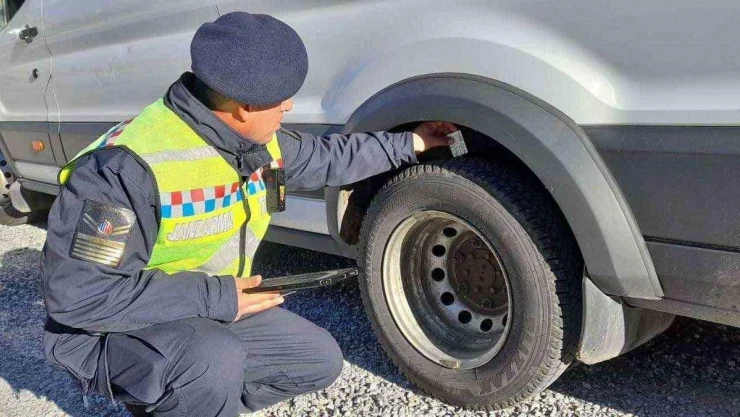 Bitlis İl Jandarma Komutanlığı tarafından kış lastiği denetimleri yapılıyor.