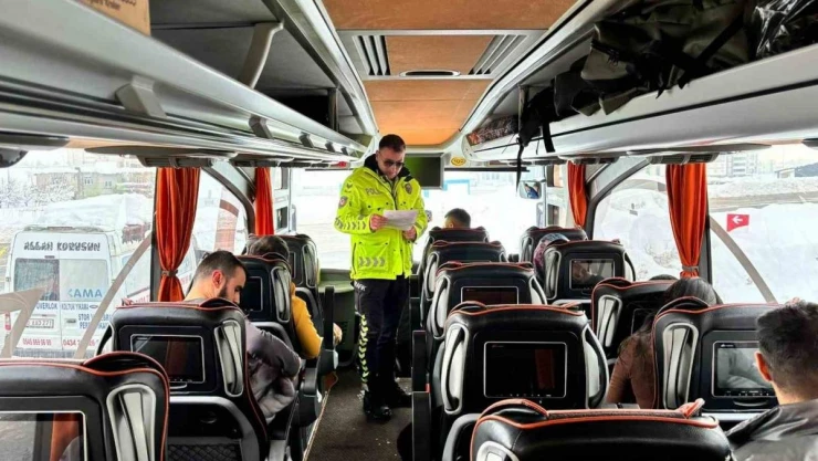 Bitlis Emniyet Müdürlüğüne bağlı ekipler, yolcu otobüsündeki yolcuları emniyet kemeri hakkında bilgilendirdi.