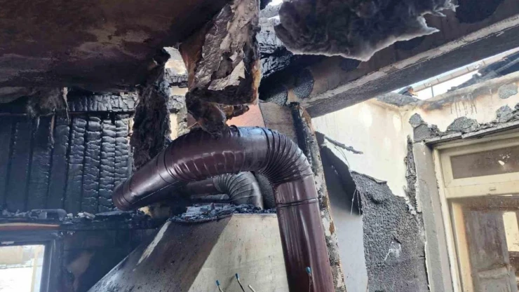 Bolu’da köy muhtarının 2 katlı evinin üst katında çıkan yangın sebebiyle üst kat küle döndü.