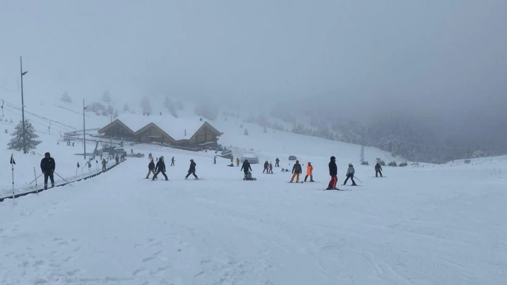 Öte yandan, Bolu’nun kayak turizmi merkezi Kartalkaya Kayak Merkezi’nde de pistlerde yapay karlama takviyesiyle birlikte kar kalınlığı 1 metreye ulaştı. Hafif kar yağışının etkisini sürdürdüğü tatil merkezinde kayakseverler kayak keyfini sürdürdü.