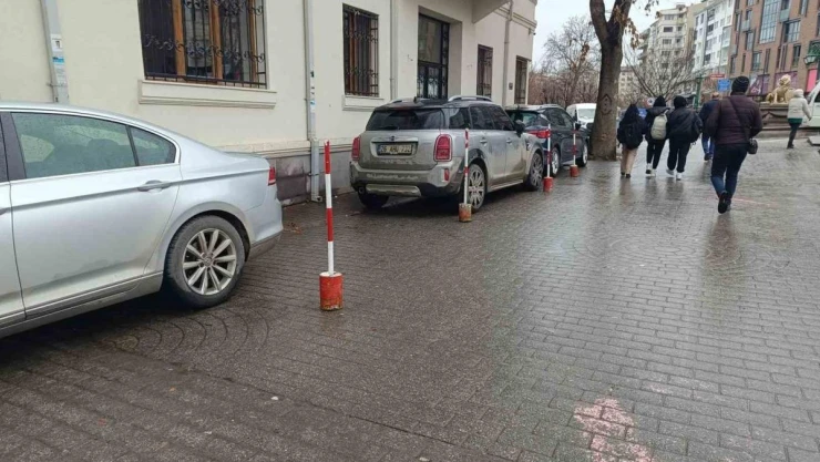 Odunpazarı ilçesi İstiklal Mahallesi’nde İki Eylül Caddesi ile Şair Fuzuli Caddesi’ni bağlayan sokağa yol boyunca park edilen araçlar görüldü. Normalde park yapılmasının yasak olduğu bilinen bölgede sürücülerin bu şekilde kuralları umursamayarak sokağı daraltması yayaların tepkisini topladı. Demir duba olarak kullanılan engellerde duyarsız sürücülere engel olamadı. Ayrıca, Eskişehir Sağlık Müdürlüğü Ek Hizmet Binası’nın önünün de park alanı haline çevrilmesi nedeniyle bir aşı nakil aracının kendi yeri yerine tramvay yolunun kenarında durduğu görüldü.