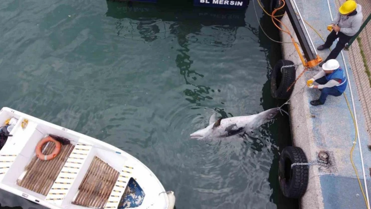 Mersin'de yaklaşık 2,5 metre boyunda 'şişe burunlu yunus balığı' (Tursiops truncatus) ölü olarak bulundu. Balıkçı ağlarına takılarak telef olduğu değerlendirilen yunus incelenmek üzere Deniz Canlıları Müzesine götürüldü.