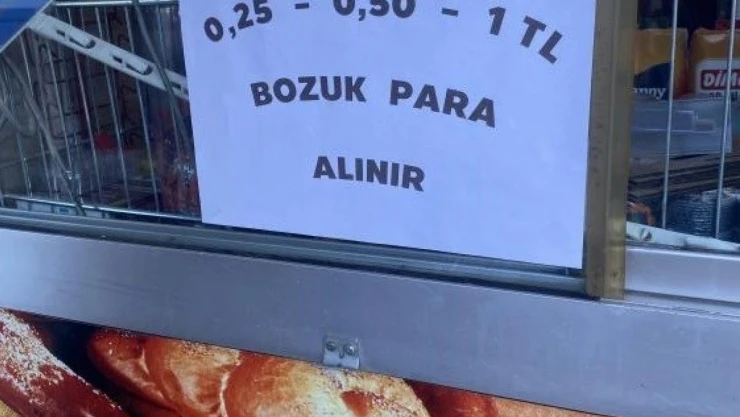 Marketler 25 kuruş, 50 kuruş ve 1 lira bulmakta zorlanıyor. Yaşanan mağduriyetin ardından esnaflar bu sorunu çözmek için kolları sıvadı. Esnaflar marketlerin kapılarının önüne yazı asarak bozuk para sıkıntısını çözmeye çalıştı.