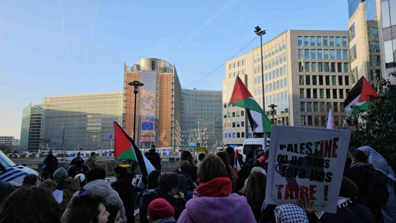 Göstericiler, İsrail’in uluslararası mahkemelerde savaş suçlusu olarak yargılanması ve ceza alması gerektiğini belirterek, Avrupa’nın Filistin halkıyla koşulsuz bir dayanışma içinde olması çağrısında bulundular.