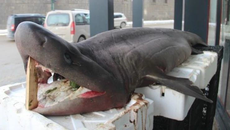 Daha önce köpek balığını sadece televizyondan gören vatandaşların dokunarak inceledikleri köpek balığı, 3 gün boyunca iş yerinin önünde sergilendikten sonra parçalanarak müşterilere dağıtılacak.