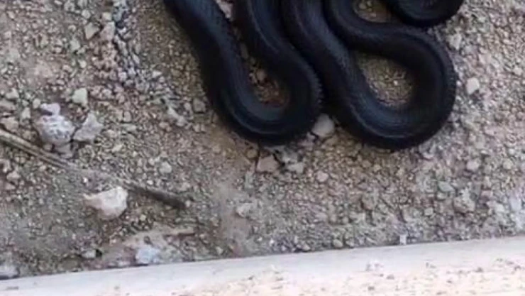 Gezin bölgesinde bulunan inşaat alanında çalışan işçiler, binanın alt tarafında kıvrılmış vaziyette bekleyen 3 metreyi aşkın boyuyla siyah bir yılan gördü. İlk başlarda hareketsiz duran yılanın, canlı olup olmadığını, üzerine kum dökerek öğrenmeye çalışan işçiler, devasa yılanın hareket etmesi ile paniğe kapıldı. Bulunduğu yerden süzülen yılan daha sonra gözden kayboldu.