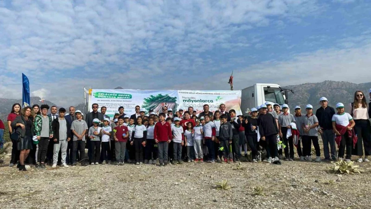 Aydın’ın Buharkent ilçesinde Cumhuriyet’in 100. yılına özel oluşturulan “100. Yıl Cumhuriyet Ormanı” için hazırlanan fidanlar toprakla buluşturuldu.