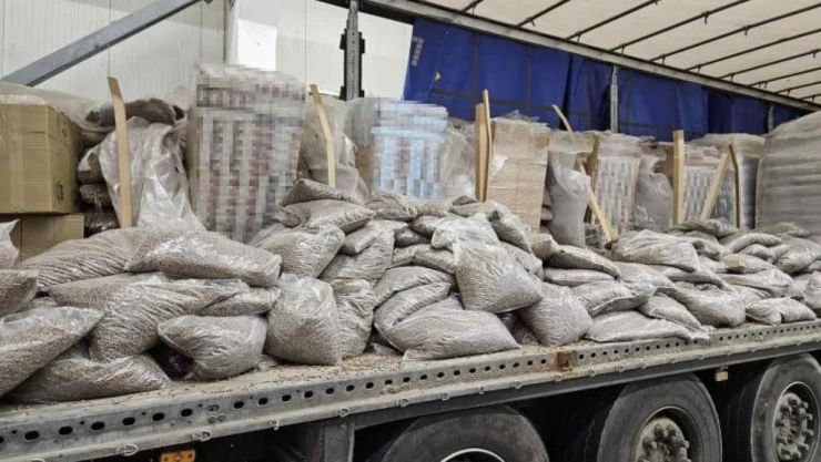 Edirne Kapıkule Sınır Kapısı'nın Bulgaristan tarafında bulunan Kaptan Andrevo Sınır Kapısı'nda yapılan kontrollerde katı yakıt peletler arasına konulan 116 bin 150 paket kaçak sigara yakalandı.