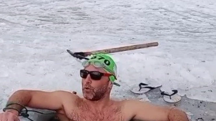Kars'ta çılgın genç tehlikeye aldırış etmeden, Çıldır Gölü'nde buzu kırarak suyu girdi. Yüzücü olduğu öğrenilen genç, buz gibi suda 3 dakika kalmayı başardı.