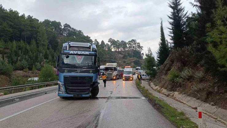 Kaza, saat 08.00 sıralarında Bucak ilçesi Antalya Isparta karayolu Karacaören mevkiinde meydana geldi. Edinilen bilgiye göre, Aytekin Ç.(62) idaresindeki 54 AIS 009 plakalı otomobil, yağış nedeniyle kayganlaşan yolda Ataol K.(25) idaresindeki 44 FV 979 plakalı otomobil ve İbrahim Mücahit D.(26) idaresindeki 07 ATZ 609 plakalı tır ile çarpıştı. Kazada Ataol K. yaralandı. Çevredekilerin 112 Acil Çağrı Merkezine yaptığı ihbar üzerine bölgeye itfaiye, sağlık ve jandarma ekipleri sevk edildi. Kısa sürede olay yerine gelen ekiplerin müdahalesi ile araçtan çıkarılan Ataol K., sağlık ekipleri tarafından yapılan ilk müdahalenin ardından ambulans ile Bucak Devlet Hastanesi’ne kaldırıldı. Ataol K.’nın durumunun iyi olduğu öğrenildi. Kazayla ilgili inceleme başlatıldı.