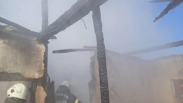 Burdur'da 2 katlı köy evinde çıkan yangında ev tamamen yanıp kül oldu.