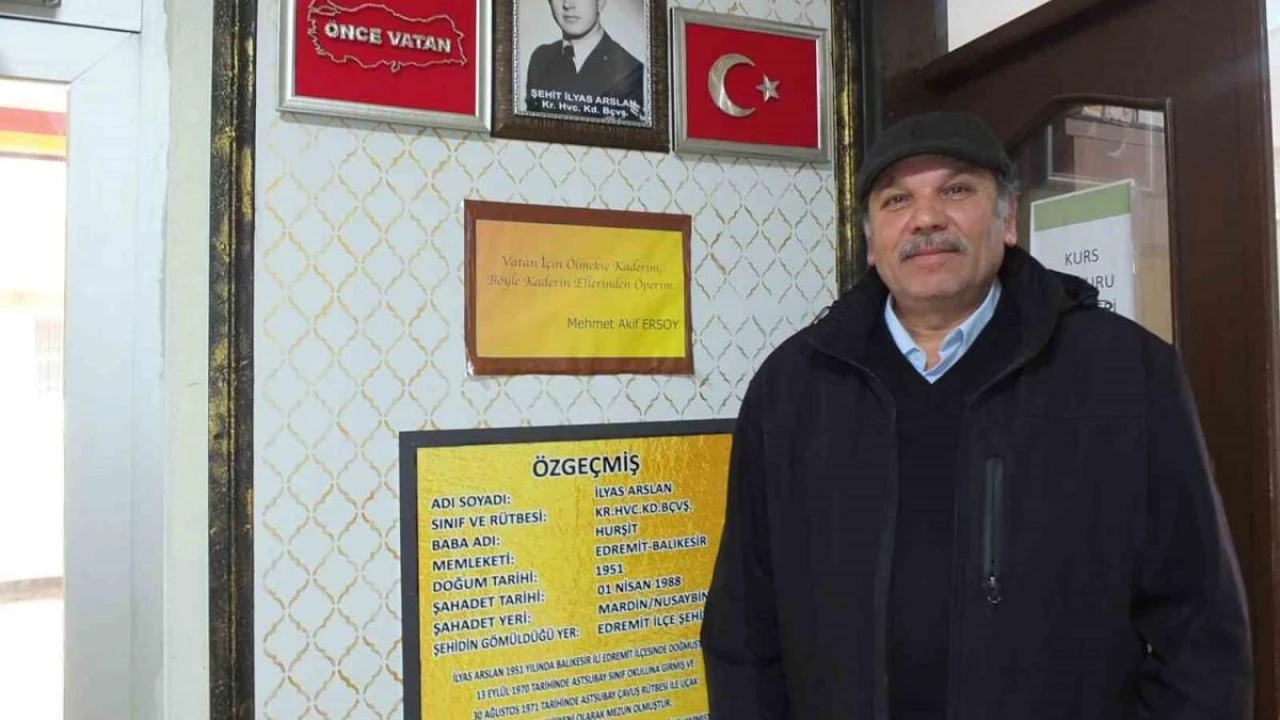Mardin’inin Nusaybin ilçesinde 1 Nisan 1988 de teröristlerle girdiği çatışma da şehit düşen Kıdemli Başçavuş İlyas Arslan’ın adı geçtiğimiz yıllarda Burhaniye Halk Eğitim Merkezine verildi. Arslan için hazırlanan köşe de, şehidin fotoğrafı ile bayrak ve şehidin özgeçmişi yer aldı. Edremitli olan şehit Arslan’a ait köşenin ilgi gördüğünü anlatan İsmail Çakır, şehitlerin unutulmayacağını söyledi.