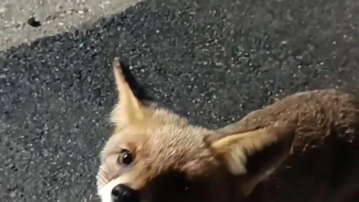 Bursa'da vatandaş eline aldığı bisküvi ile tilkiyi besledi.