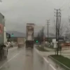 Bursa'da kamyon damperi açık şekilde seyretti, direği devirince durdu