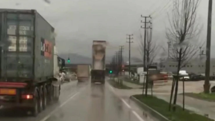 O anlar ise kamyonun arkasında bulunan bir sürücünün cep telefon kamerasına yansıdı.