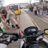 O esnada bir midibüsün önünden geçen yaya ile motosiklet sürücüsü gözgöze geldi. Muhtemel bir kaza, motosiklet sürücüsü Karakuş’un bir anlık refleksi sayesinde kıl payı önlendi.