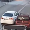 Bursa'da seyir halindeki otomobil alev alev yanarken o anlar kameraya yansıdı.