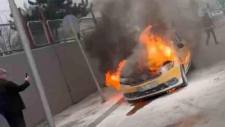 Bursa’da seyir halindeki ticari taksi, motor kısmından alev alması sonucu büyük hasar gördü.