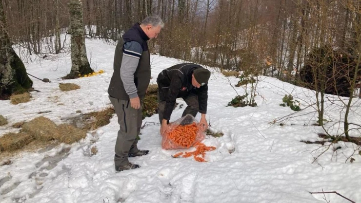 Tarım Orman Bakanlığı Doğa Koruma ve Milli Parklar Genel Müdürlüğü 2.Bölge Müdürlüğüne bağlı Bursa Şube Müdürlüğü Av Koruma-Kontrol ekipleri, yoğun kar yağışı ve zor kış şartlarında yem bulmakta güçlük çeken yaban hayvanları için doğaya yiyecek bıraktı.