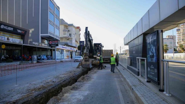 Antalya Büyükşehir Belediyesi, Varsak Süleyman Demirel Bulvarı'nda içme suyu isale hattında yenileme çalışması yapıyor.