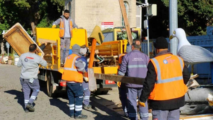 Antalya Büyükşehir Belediyesi, hafta sonu etkili olan fırtına ve şiddetli yağış nedeniyle Yat Limanı’nda ve Konyaaltı Sahili’nde oluşan kirliliği ortadan kaldırmak için temizlik çalışması yaptı.