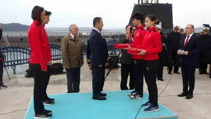 Daha sonra halk oyunları ve mehter gösterisi sergilendi. Şehitler diyarı Gelibolu Yarımadası’ndan alınan toprak, zaferin kazanıldığı Çanakkale Boğazı’ndan alınan deniz suyu ve rengini şehitlerimizin kanından alan Türk bayrağından oluşan kutsal emanetler, Vali İlhami Aktaş tarafından bu yıl Ankara’ya götürecek olan atletler Mehmet Serbes ile Nilhan Akaman’a teslim edildi.