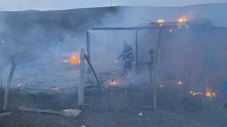 Çankırı’da alevlere teslim olan ahır kullanılamaz hale geldi.