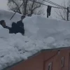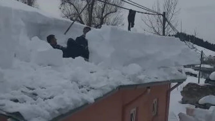 Çatıda biriken karları böyle temizlediler