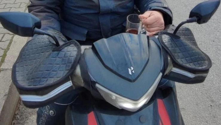 Çay içerek motosiklet kullanan sürücüye ceza