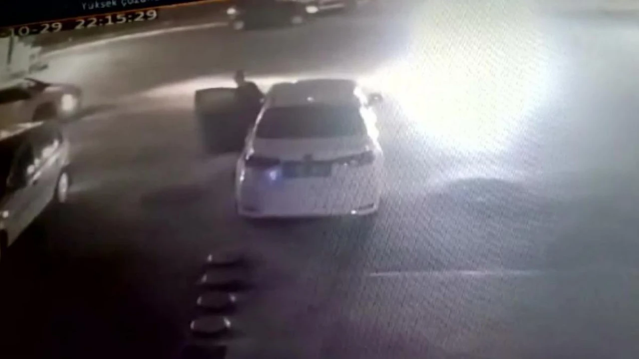 Akaryakıt istasyonunda bir kişiyi darp edip aracını gasp eden şahıs ise güvenlik kamerasına yansıdı.