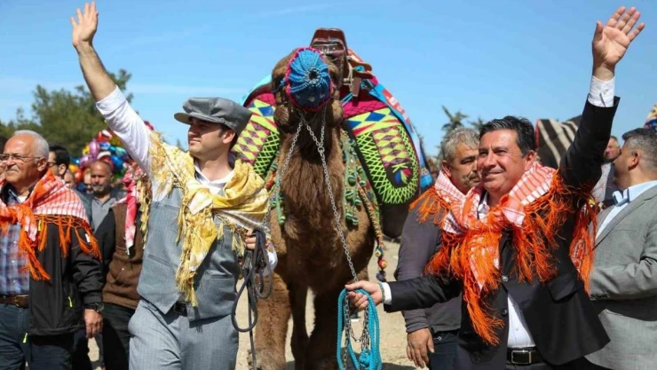 Mandalinci ve Aras daha sonra Kızılağaç’ta düzenlenen Bodrum Geleneksel Deve Güreşleri Festivaline katıldı. Yöresel kıyafetlerle güreş alanına gelen Mandalinci ve Aras, Turgutreis’ten müsabakalara katılan deveyi de alanda gezdirdi.