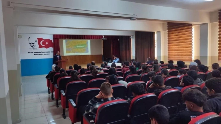 Çıldır Anadolu İmam Hatip Lisesi konferans salonunda Anadolu İmam Hatip lisesi ve Çok Programlı lise öğrencilerine "Türk Devlet anlayışında Cumhuriyet" konulu konferans düzenlendi.