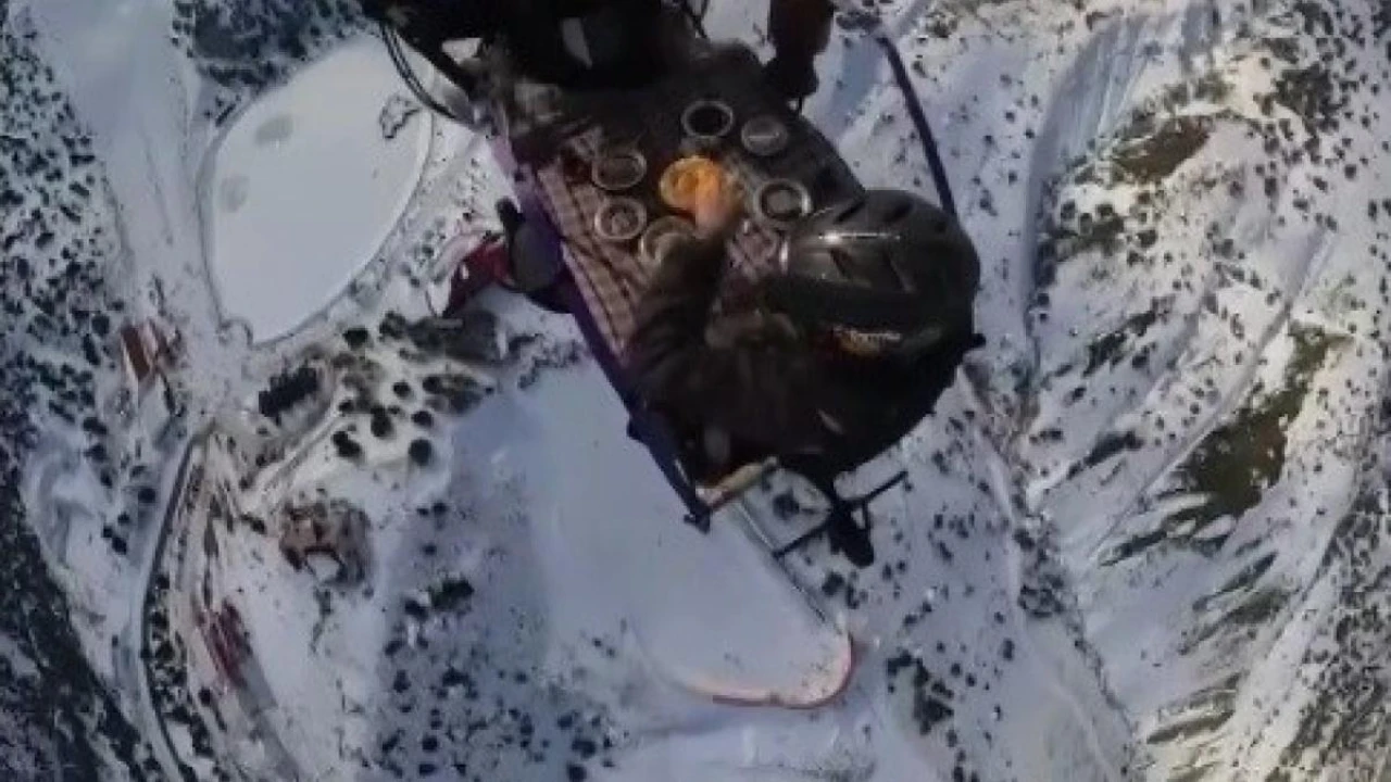 Erzincan’da bulunan Ergan Kayak Merkezinde yamaç paraşütü pilotu Hasan Kaval’ın özel olarak hazırladığı düzenek sayesinde paraşütüne bağladığı masada gökyüzünde kahvaltı yaptığı görüntüler kısa sürede sosyal medyada viral oldu.