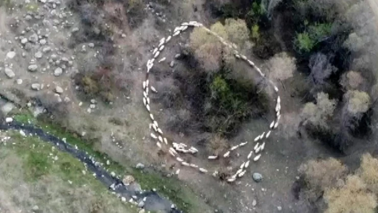 Çin'in İç Moğolistan Özerk Bölgesi'ndeki bir çiftlikte 12 gün boyunca durmadan daire çizerek dönen koyunların görüntüsünün bir benzeri Afyonkarahisar'da yaşandı. Koyunların döndüğünü gören sürü sahibi ise hayvanları önce dron ile görüntüledi, ardından koyunların telef olmaması için çemberi bozdu.