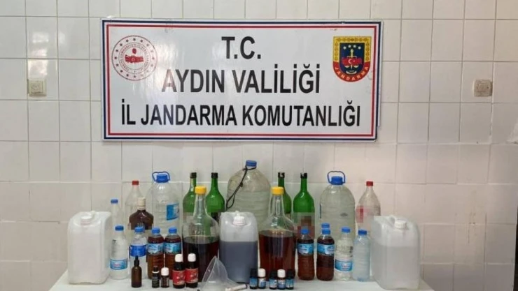 Aydın'ın Çine ilçesinde jandarma ekipleri tarafından yapılan kaçak alkol operasyonunda 35 litre bandrolsüz ve hologramsız alkol, anason ve viski kitleri ele geçirildi.