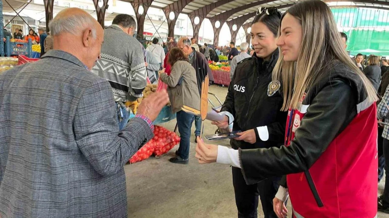 Aydın'ın Çine ilçesinde kadına yönelik şiddete dikkat çekmek için stant açan Çine Sosyal Hizmetler Merkezi Müdürlüğü, pazar yerindeki vatandaşları bilgilendirerek kadına karşı şiddete dikkat çektiler.